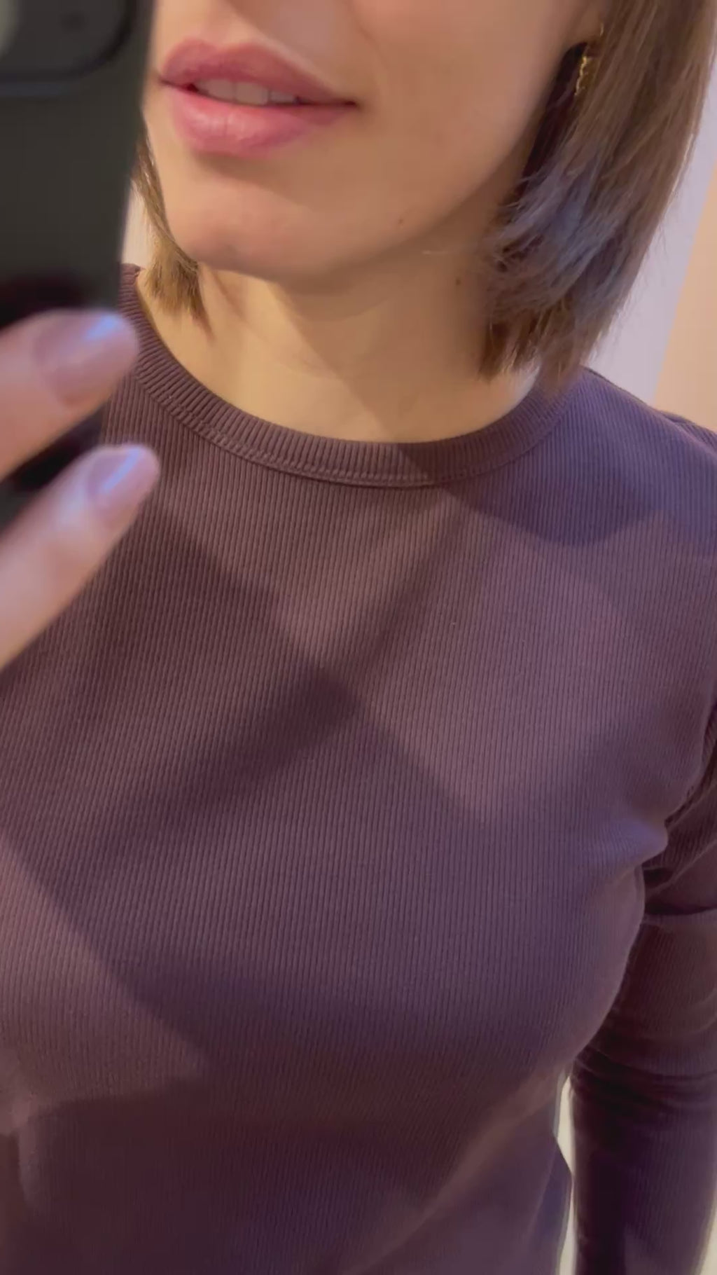 T-shirt in ribstof met ronde hals en lange mouwen.