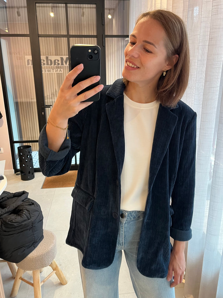 Combinatie: jeans Lady, blazer Staf, hemd Sally
