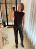 Licht gecentreerde, mouwloze top met ronde hals en prachtige glitter.