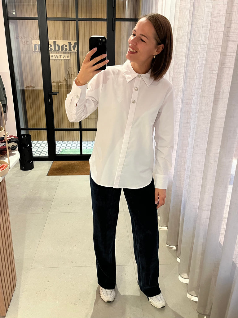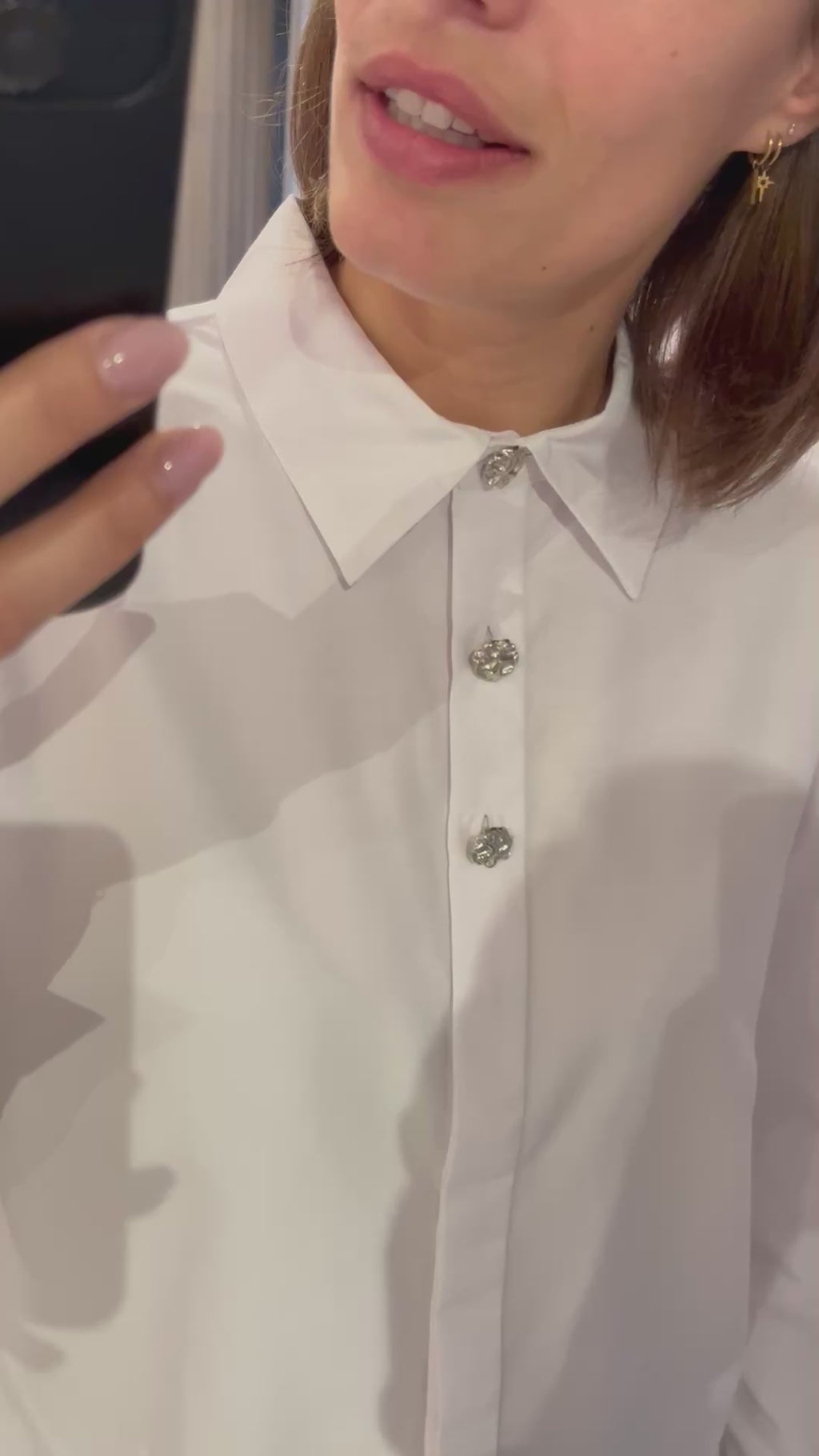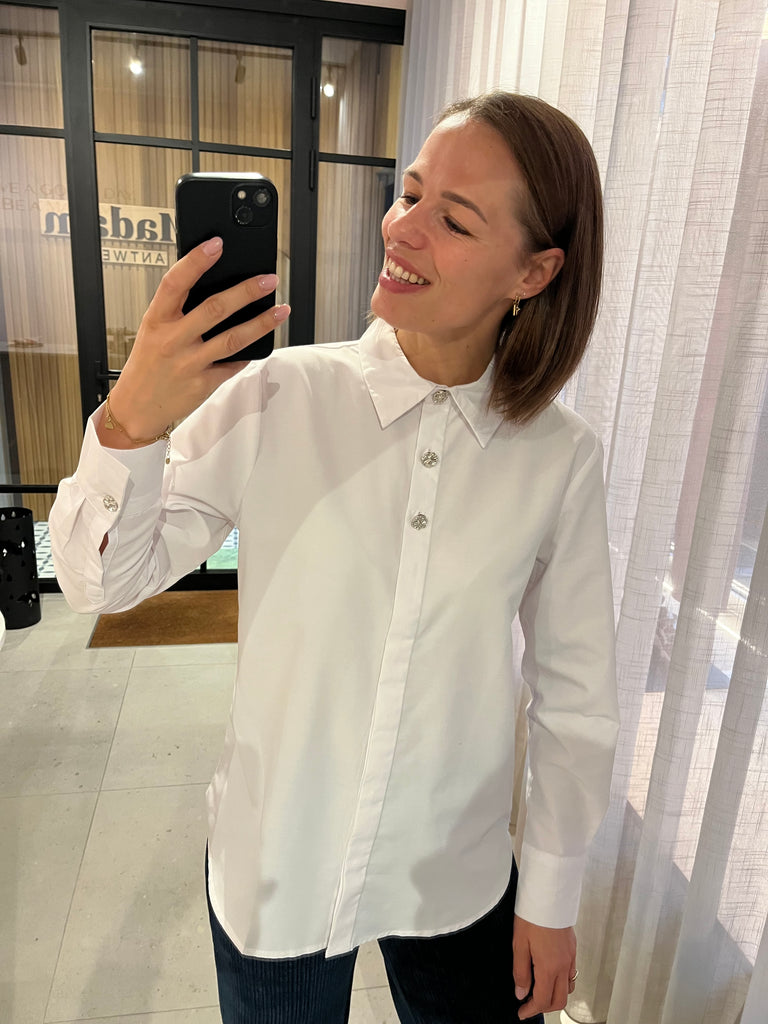 Klassieke blouse met prachtige statement-knopen in zilver.