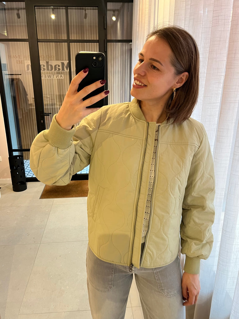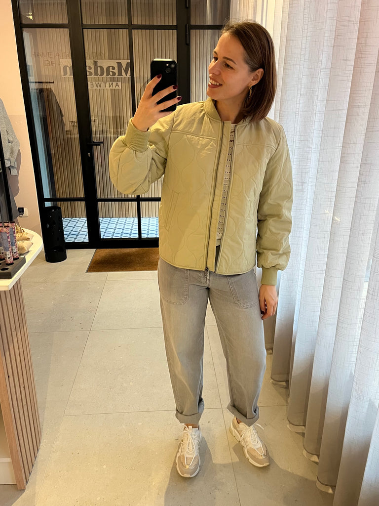 Super leuke tussenseizoensjas met subtiel opstaand kraagje en sluiting met rits.