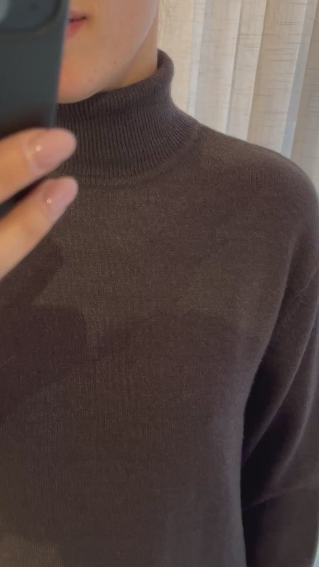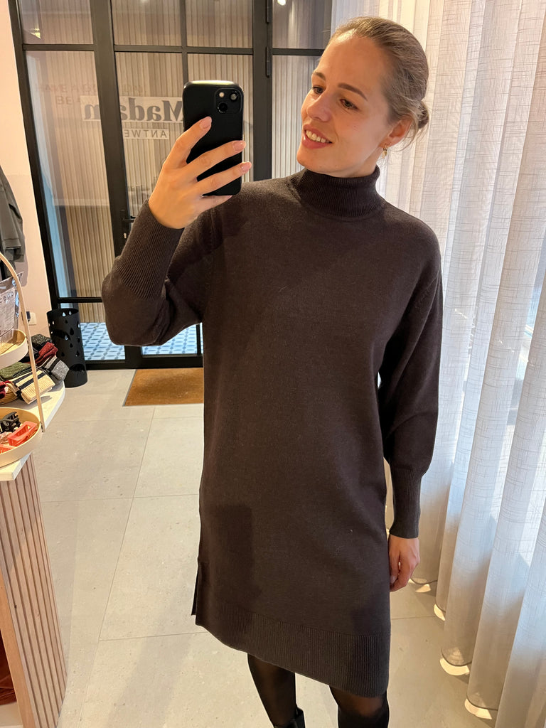 Lange, losvallende, gebreide jurk met lange mouwen en rolkraag. Super zacht!