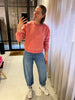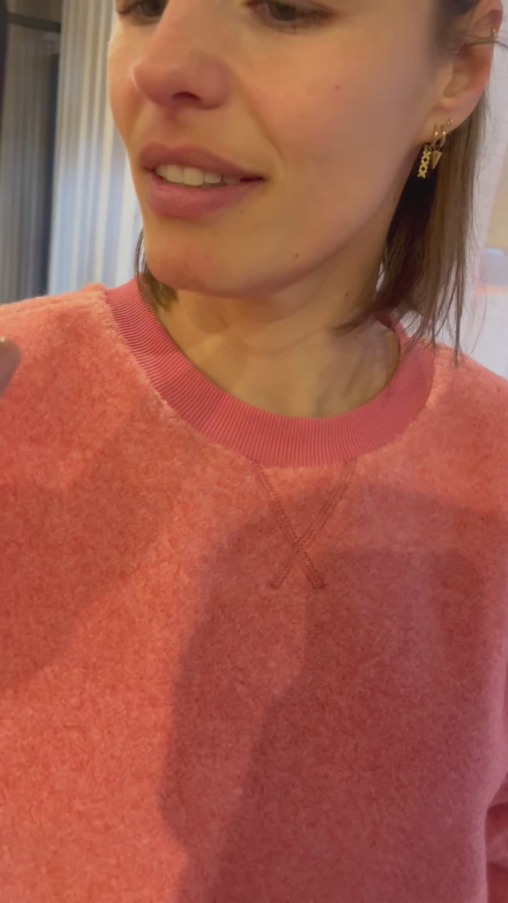 Losvallende sweater in super zachte teddy-stof. Cosy-look door de stof, maar sportief afgewerkt met ribboorden onderaan, aan de hals en aan de polsen.