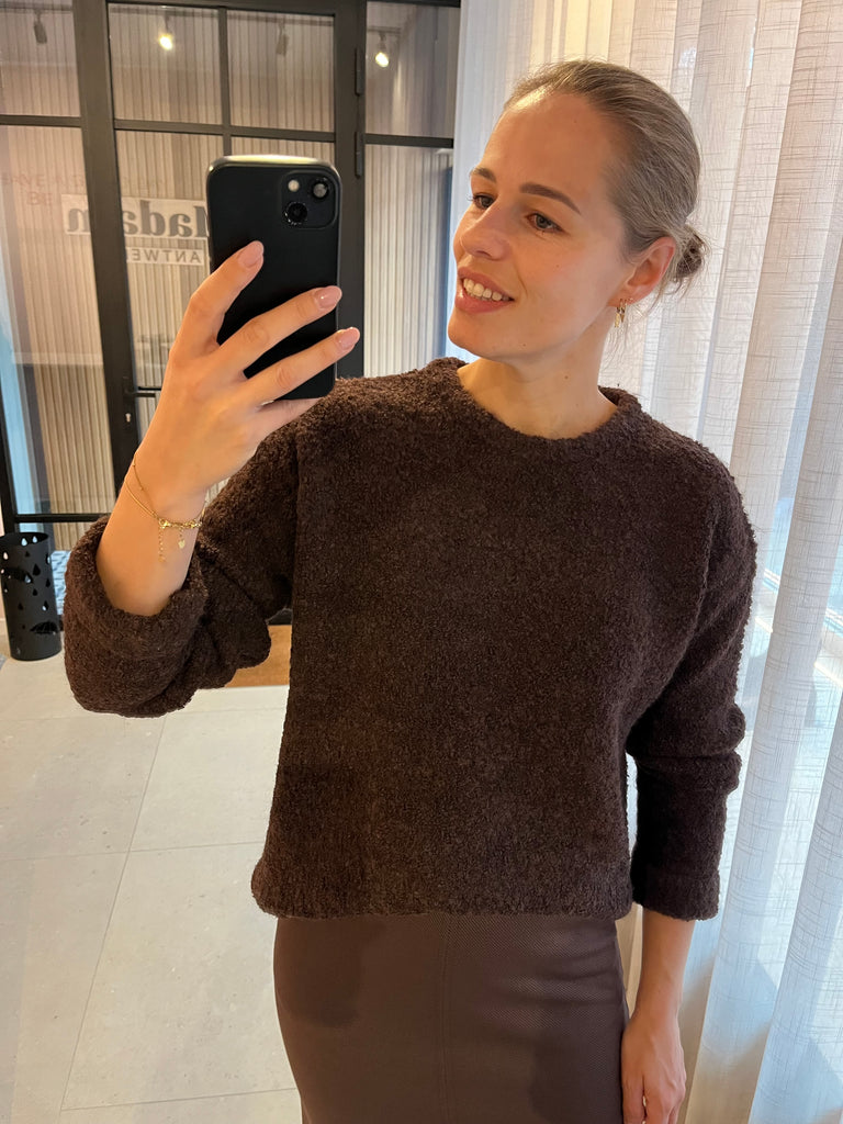 Super zachte, losvallende trui met lange mouwen en ronde hals.