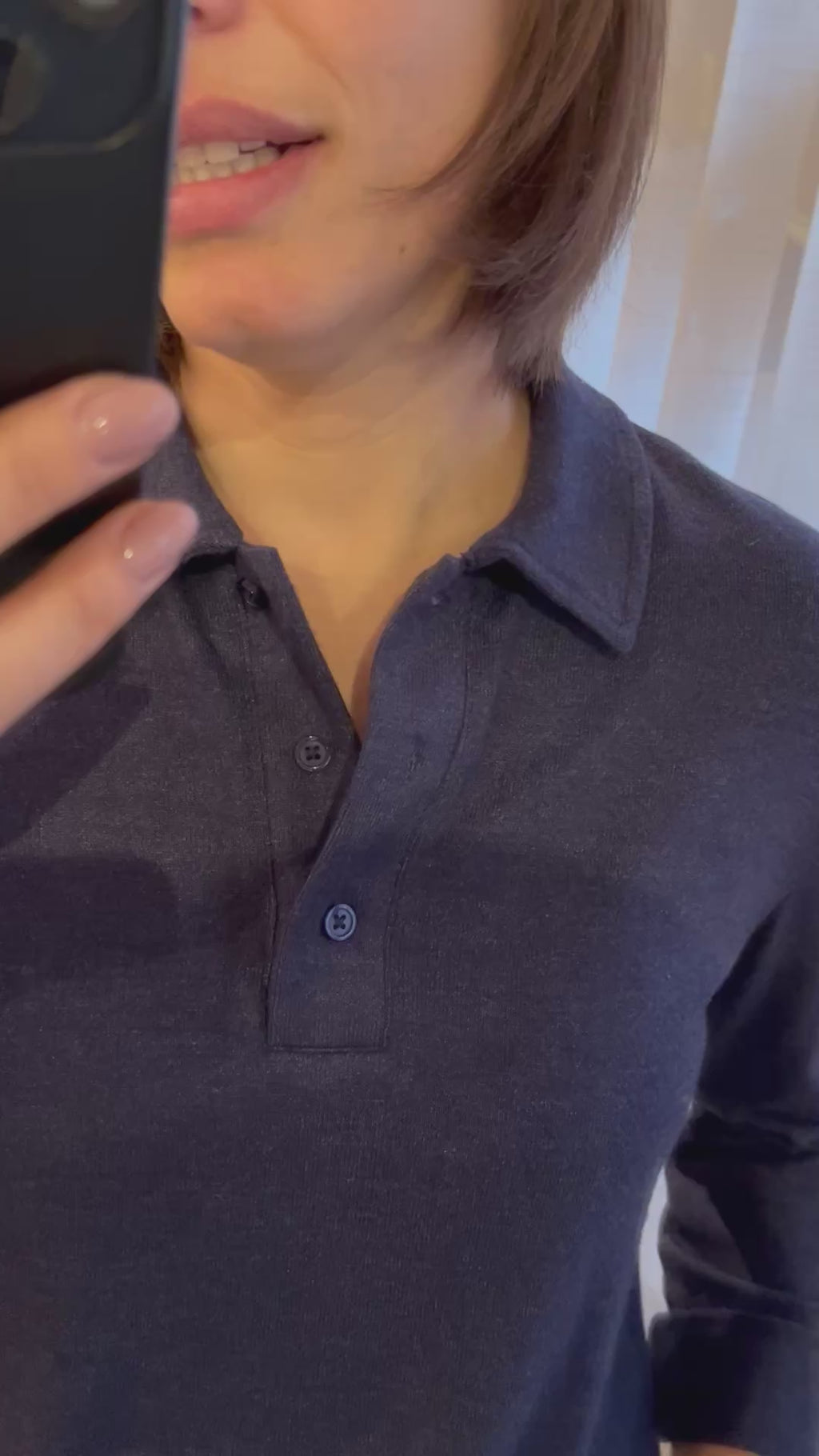 Super zacht trui'tje in polo-look. Sluiting met 3 knoopjes.
