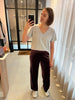 Heerlijk zachte, gevoerde broek in prachtig velours met hoge taille, losvallende pijpen en zakjes. Sluiting met rits aan de zijkant. Super leuk als set met broek Bosella :-)
