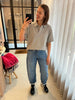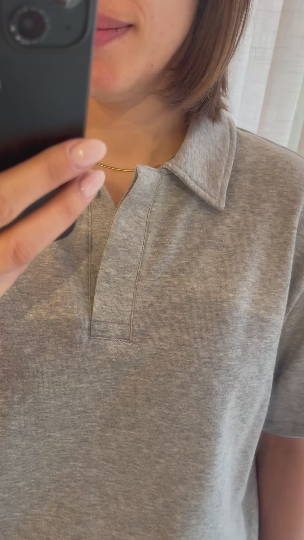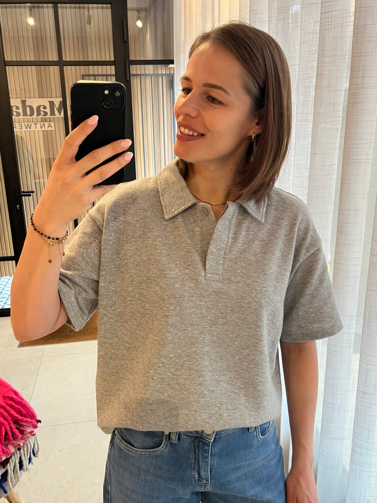 Super zachte, oversized top met polo-kraagje, afhangende schouders en halflange mouwen.
