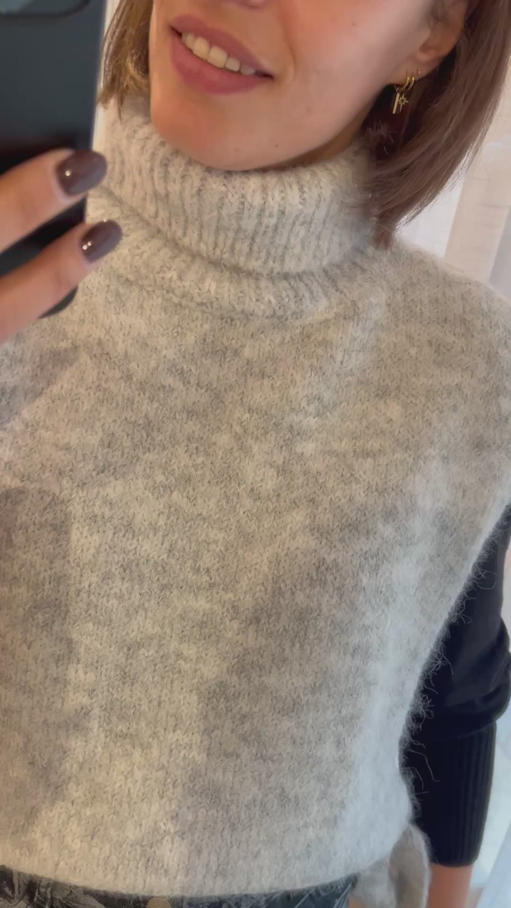 Prachtige poncho met rolkraag en sluiting met lintjes aan de zijkant.