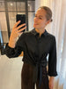 Prachtige blouse met subtiele ballonmouwen en elastisch bandje aan de polsen. Sluiting met knoopjes vooraan en elegant knoopdetail vooraan.