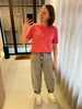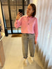 Combinatie: top Rudy, t-shirt Eloise roze, cardigan Chloe, blouse Flynn
