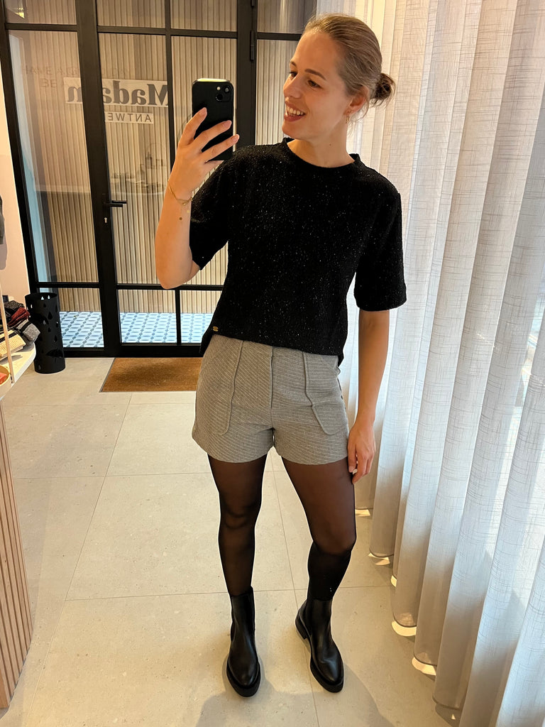 Prachtige short in dikkere stof met hoge taille en steekzakken. Super leuk als set met vest Jul ;-)