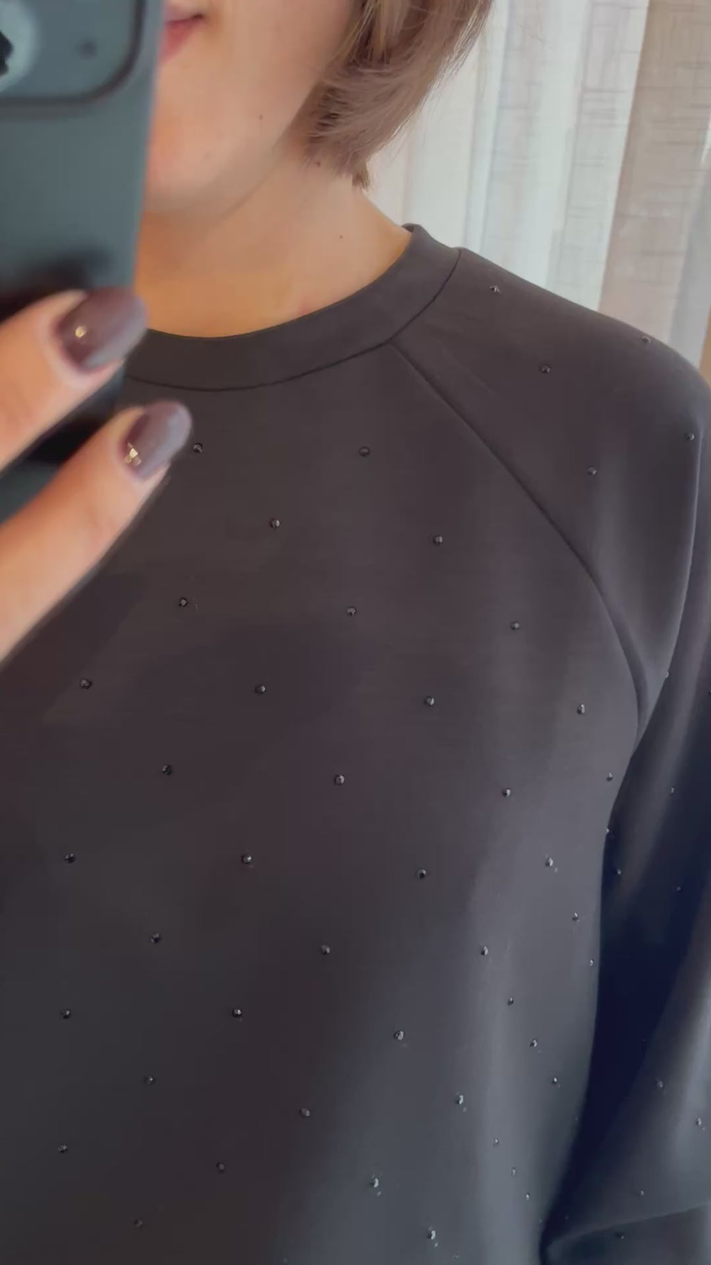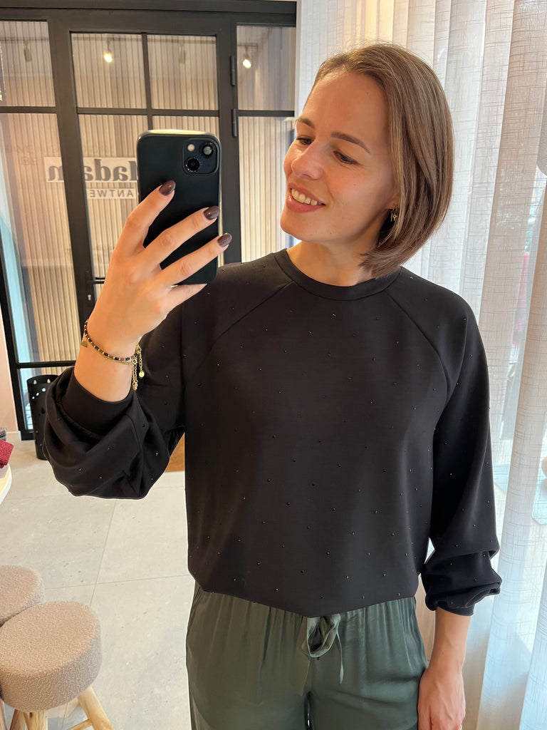 Super zachte, losvallende sweater, in lichte stof, met ronde hals en afgewerkt met glittersteentjes.