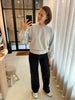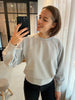 Losvallende sweater in elastische ribstof met ronde hals en elastische boord onderaan en aan de polsen. Super zacht!