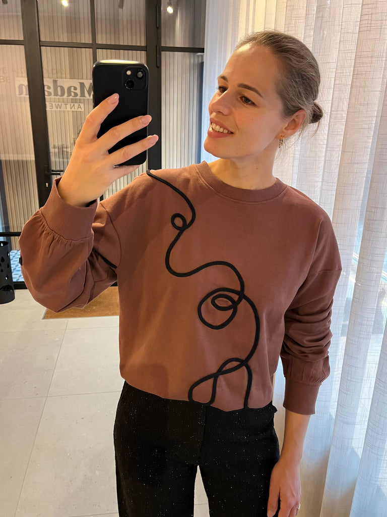 Losvallende sweater met lange mouwen, ronde hals en speels borduursel. Super zachte fleece binnenin.