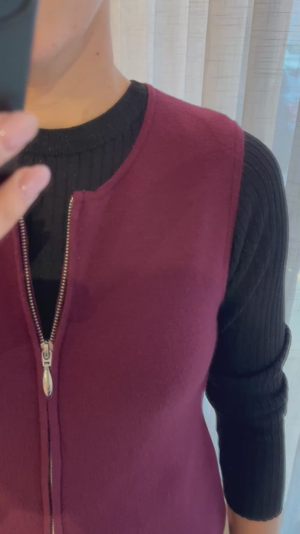Mouwloze top met ronde hals en dubbele rits.