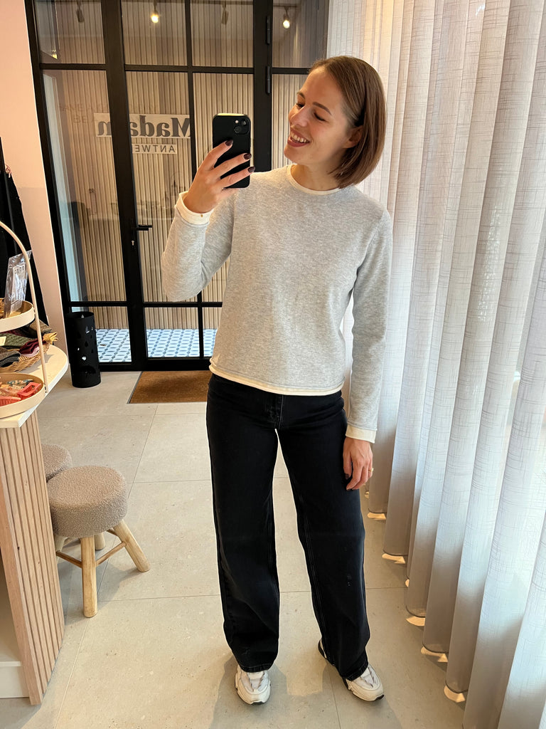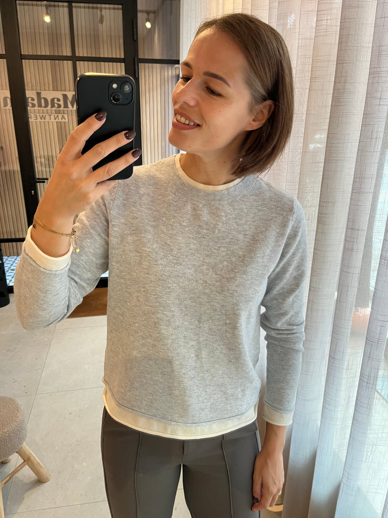 Super zachte trui met gelaagde look, ronde hals en contrastboorden.