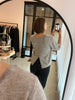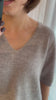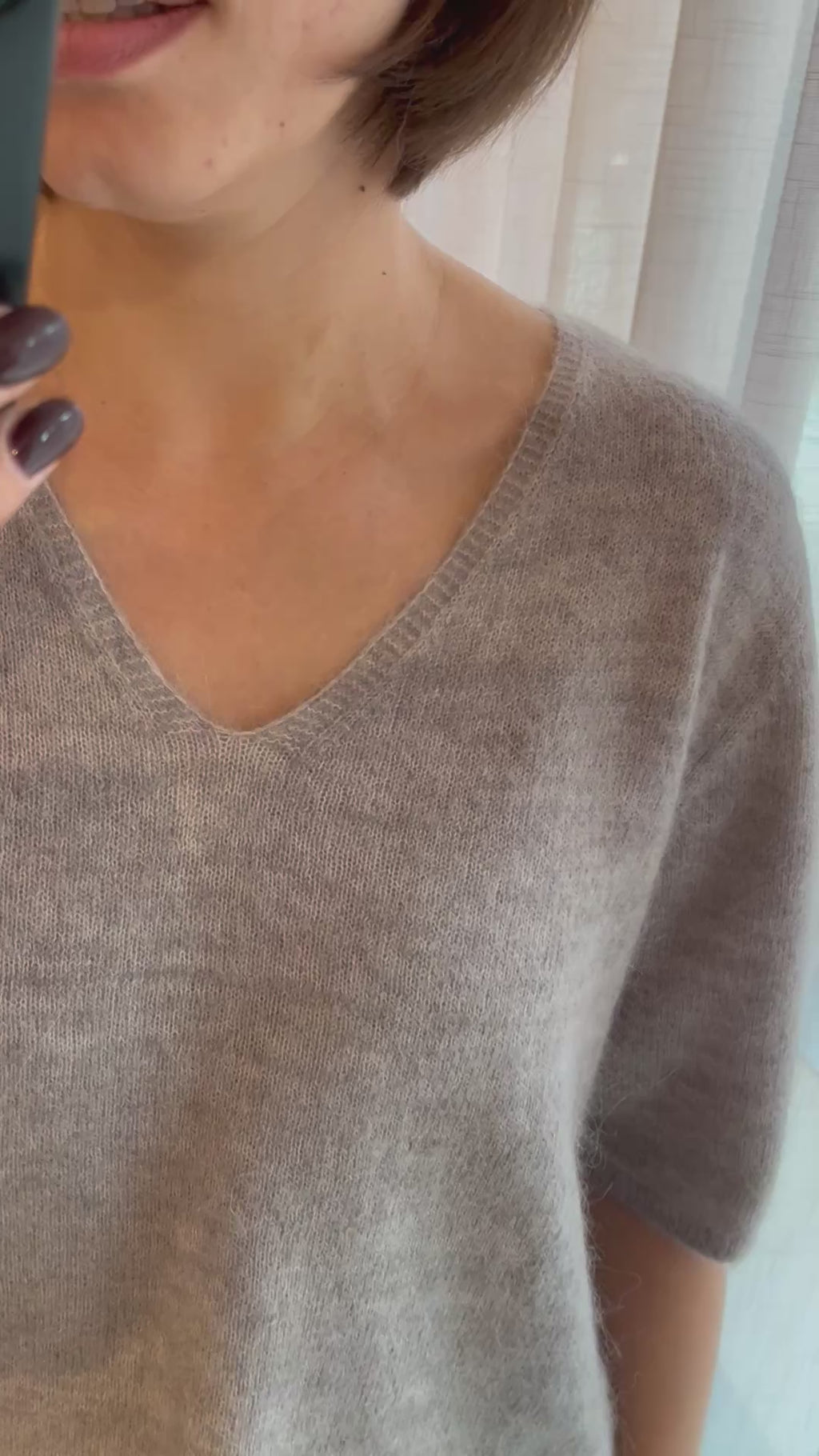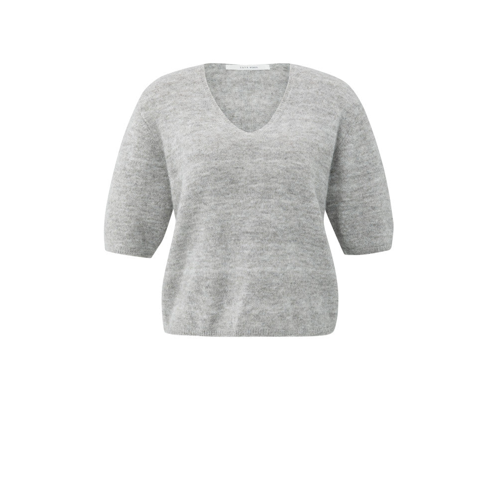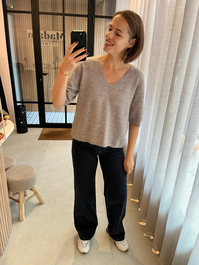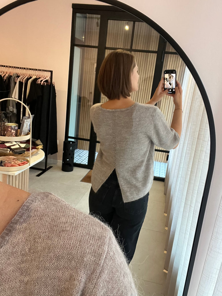 Licht trui'tje met v-hals, halflange mouwen en prachtig knoopdetail met splitje op de rug.