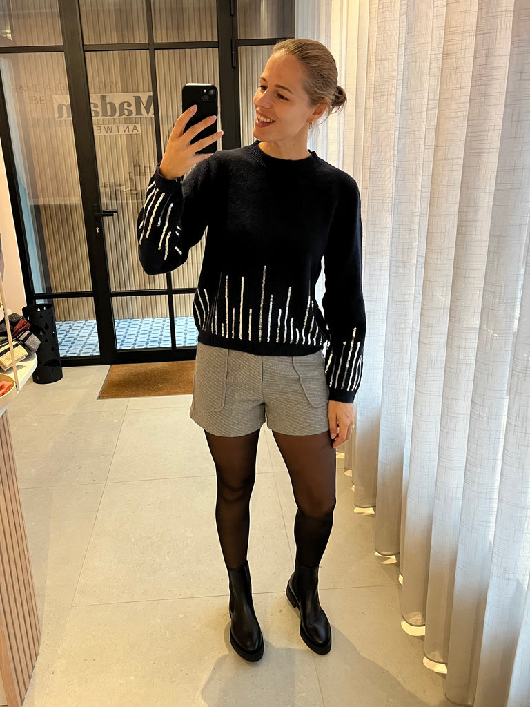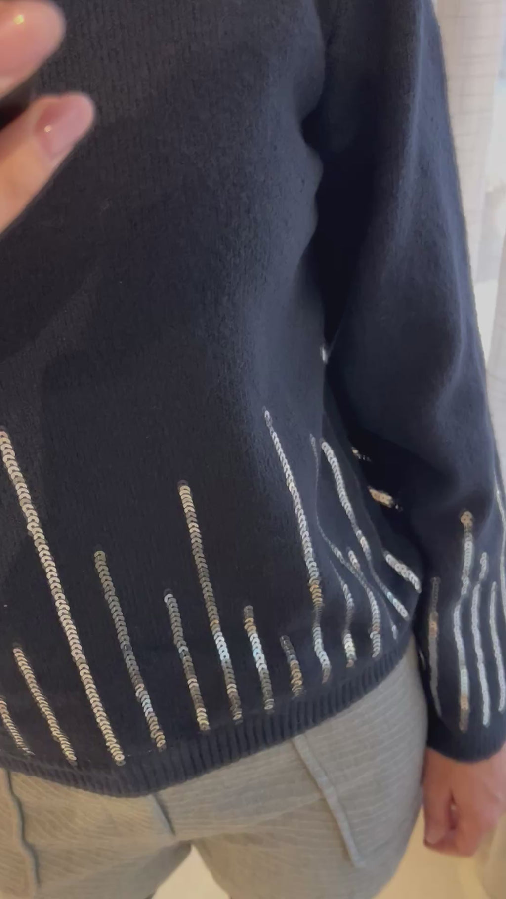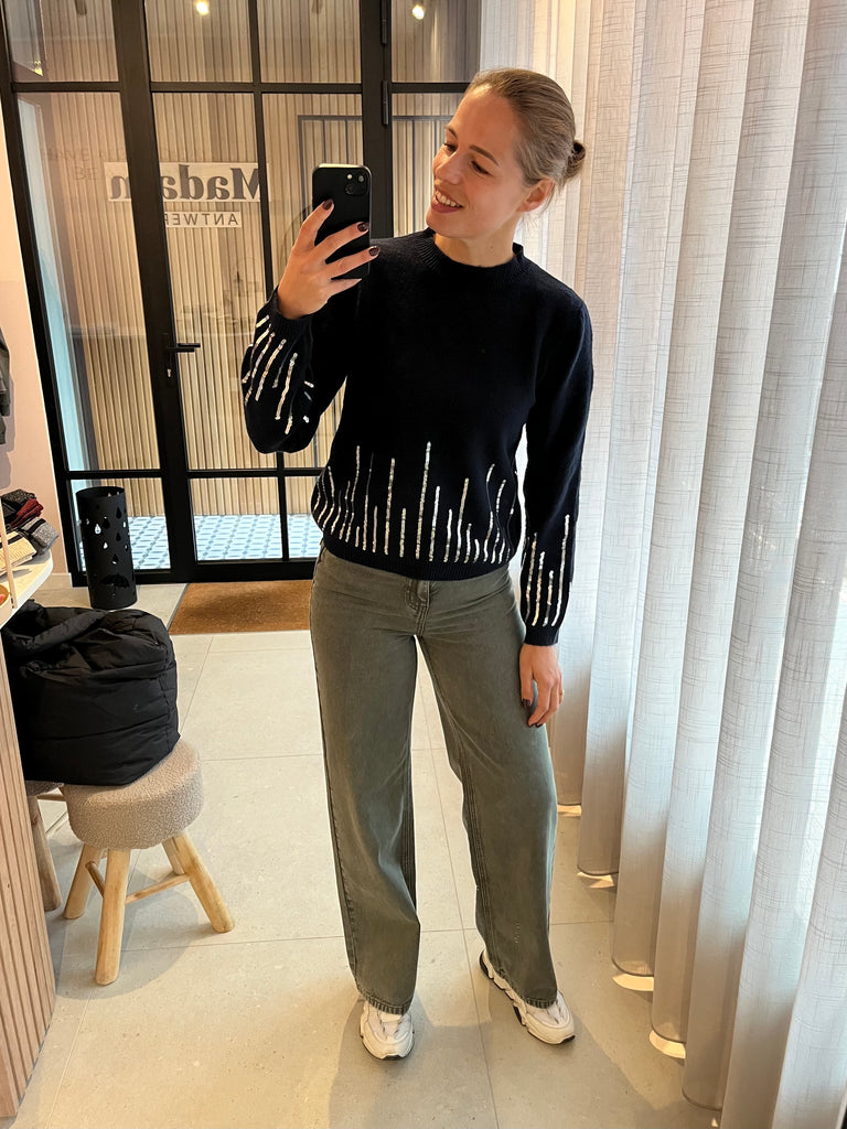 Rechtvallende trui met ronde hals en prachtige pailletten onderaan. Super zacht!