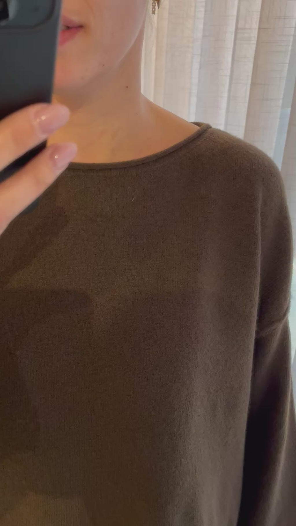 Zachte, losvallende trui met afhangende schouders en subtiele boothals.